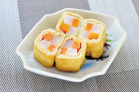 サーモンに含まれるEPAが血液をサラサラにしDHAが脳を活性化してくれ、にんにくに含まれる香り成分硫化アリルが血行をよくしてくれると言われています。大葉の香りが食欲をそそる一品です。