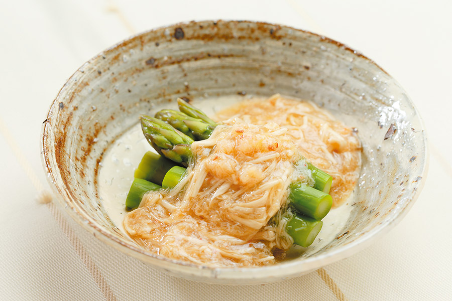 ②①にザーサイと水気を切ったひじきを加えてさっと煮て、塩、こしょうで味をととのえる。