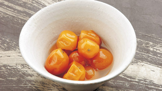 ②Aを合わせて①を漬け込み、器に盛りつけていくらとみつ葉を散らす。