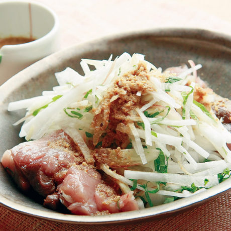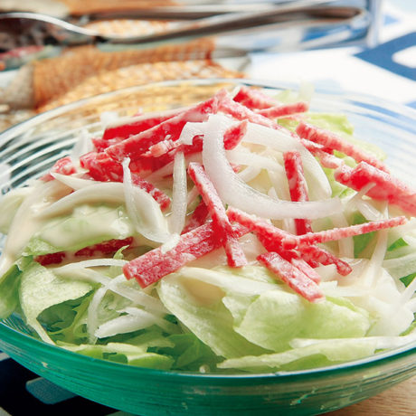 血液サラサラ「新玉ねぎとサラミのしょうゆドレッシングサラダ」