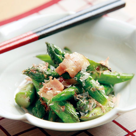 疲労回復に「アスパラベーコンのおかかあえ」