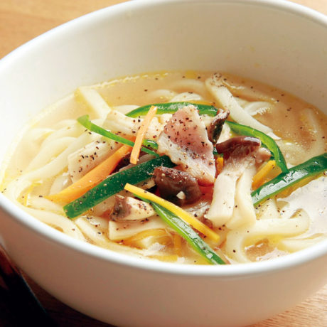 疲労回復に「きのことベーコンの洋風うどん」